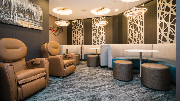 A warm and cozy boutique setting for premium guests (Eagle Gold and Eagle Platinum ticket-holders) to gather and mingle for drinks and refreshments before entering to the premium screening halls for their movies. Premium guests may place additional orders for food and drinks (from the EagleWings Loft menu) to be served during the movie.